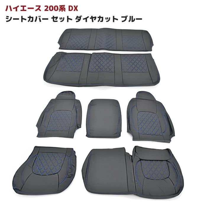 ハイエース 200系 DX シートカバー セット ダイヤカット ステッチ ブルー 運転席 助手席 後部座席セット