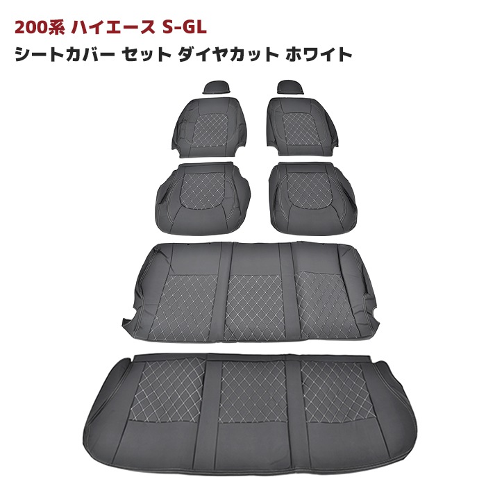 ハイエース 200系 S-GL シートカバー セット ダイヤカット ホワイト ステッチ 運転席 助手席 後部座席セット