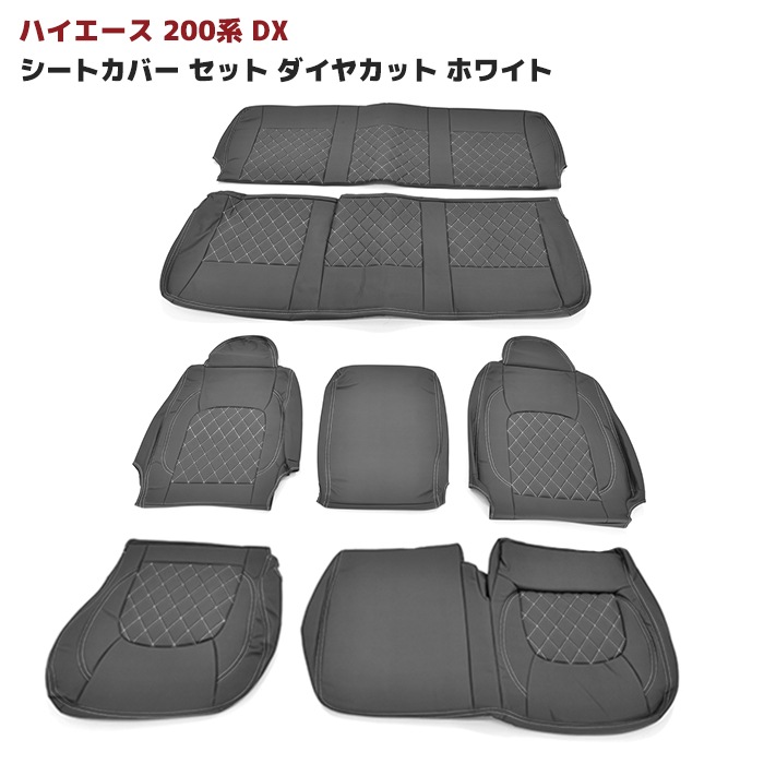 ハイエース 200系 DX シートカバー セット ダイヤカット ステッチ ホワイト 運転席 助手席 後部座席セット