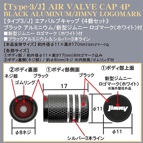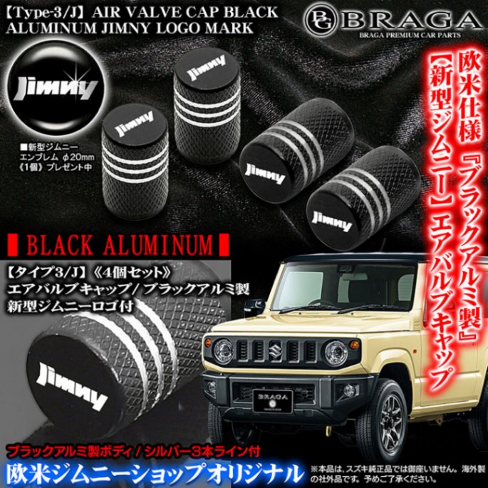 φ20mmジムニーマーク付 ジムニー/シエラ[スズキ新型ジムニー ロゴマーク付]ブラック アルミ製/エアバルブキャップ[タイプ3/...