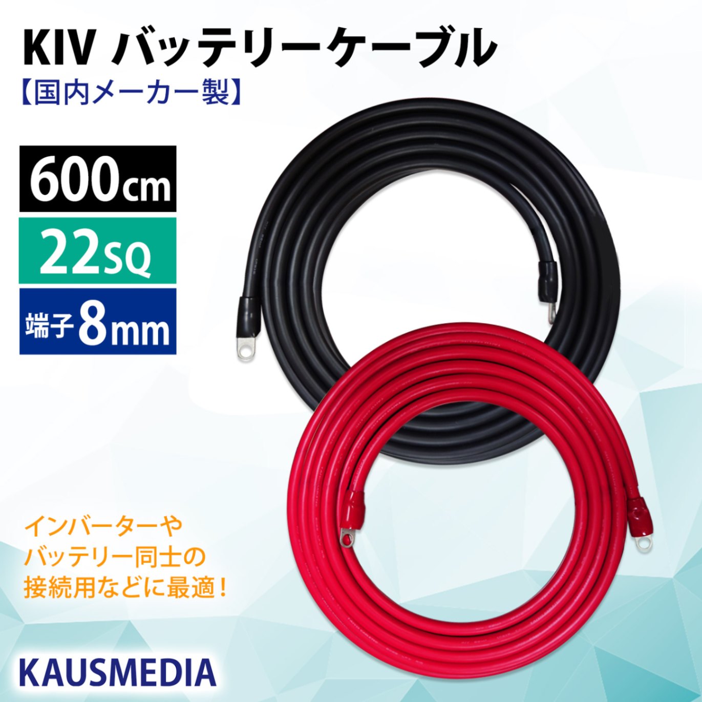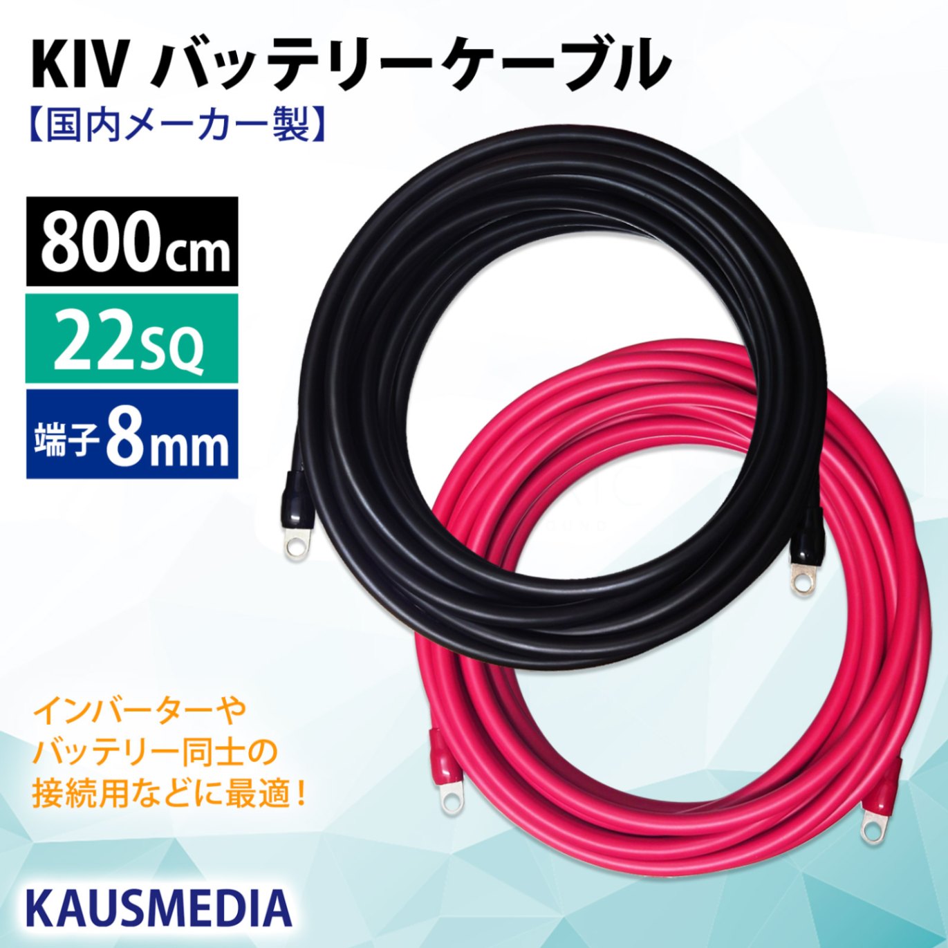 22sq 5m KIVケーブル 8mm穴 丸形圧着端子 ニチフ R22-8s 国内メーカー製 ケーブル 端子 絶縁キャップ付 バッ...