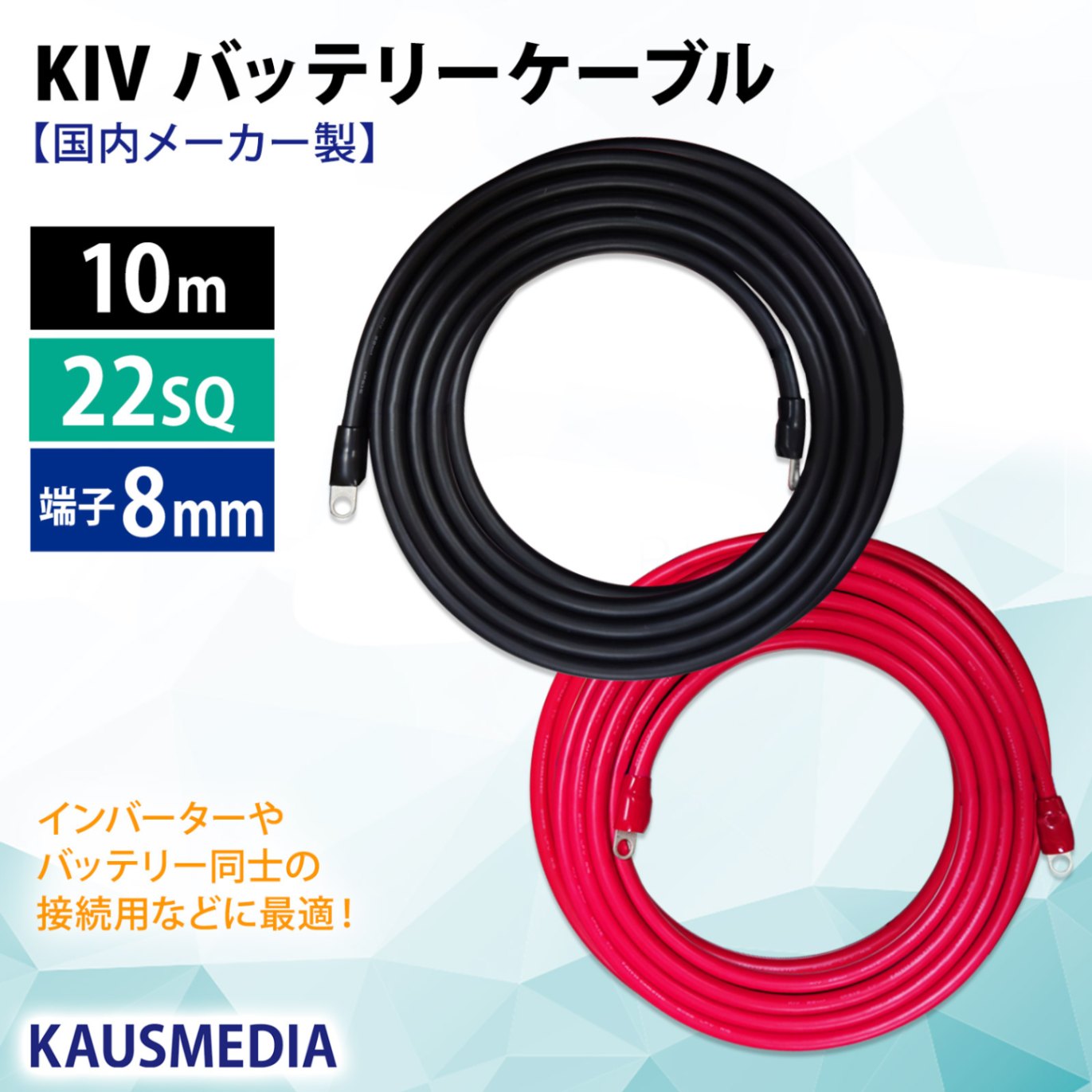 22sq 10m KIVケーブル 8mm穴 丸形圧着端子 ニチフ R22-8s 国内メーカー製 ケーブル 端子 絶縁キャップ付 バ...
