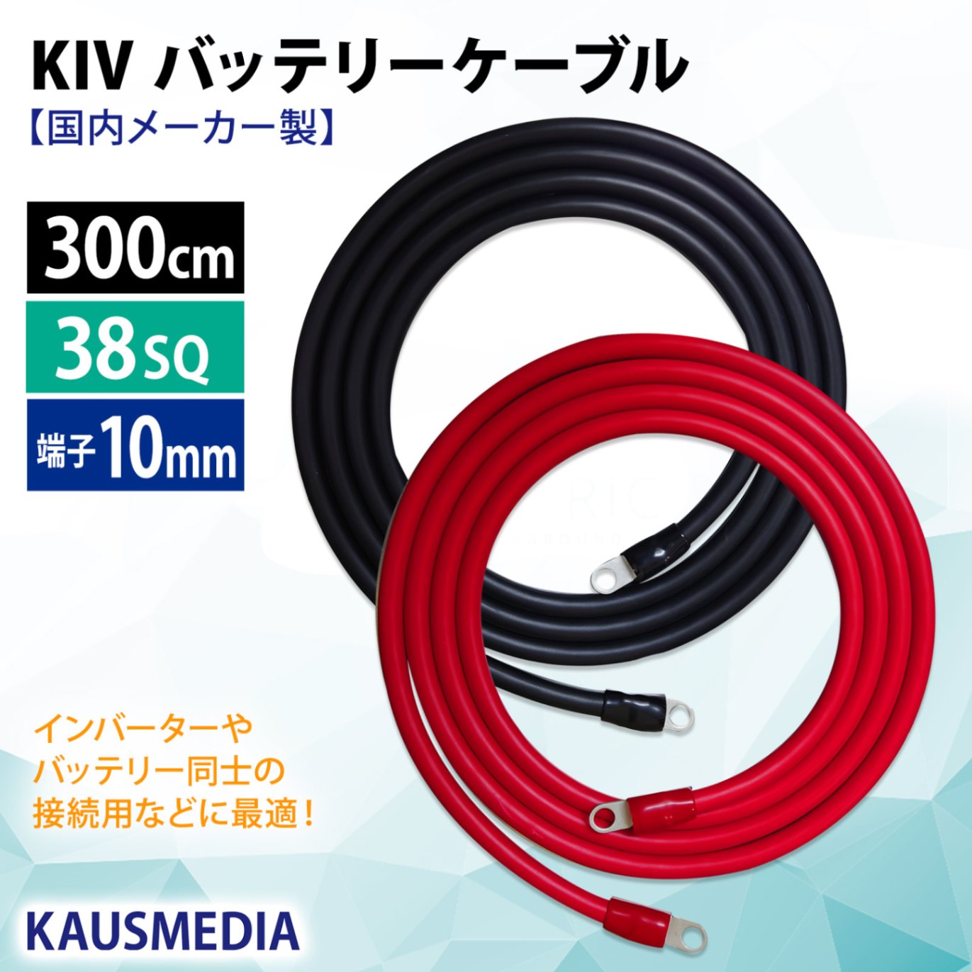 38SQ 3m KIV ケーブル R38-10S ニチフ 丸形圧着端子 10mm穴 絶縁キャップ 圧着 加工済 国内メーカー バッ...