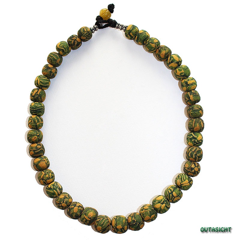 アフリカ・ガラスビーズ ネックレス 5カウボーン&アフリカンアンバー(アッシュ)現地職人の特別注文による一点もの