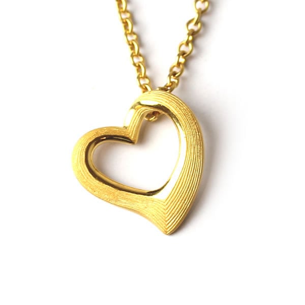 【即日お届け】オープンハート(幅14.9mm) 純金ペンダント(SV925チェーン付き)