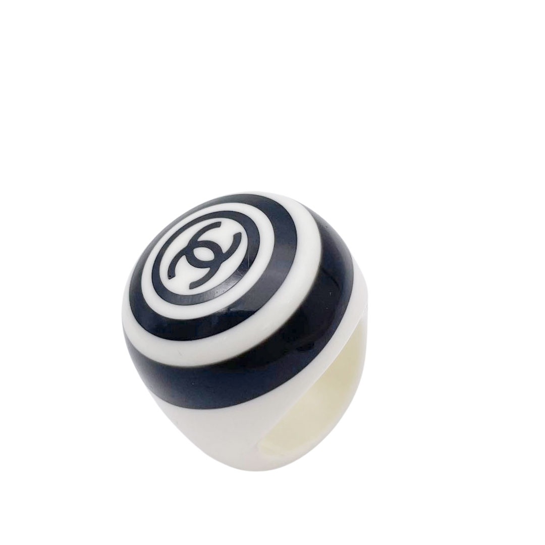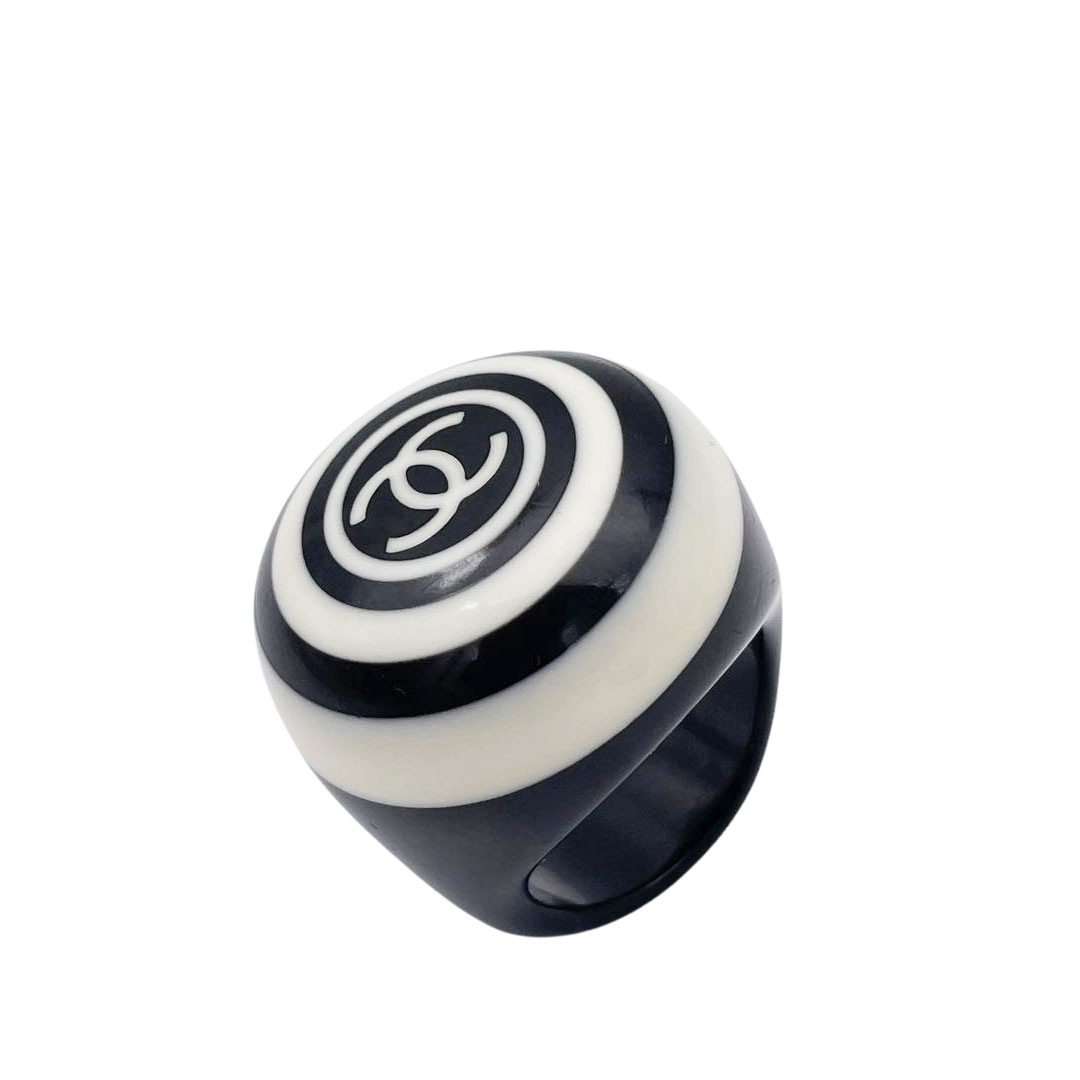 CHANEL シャネル プラスチックリング 指輪 ココマーク ブラック/ホワイト 約12号