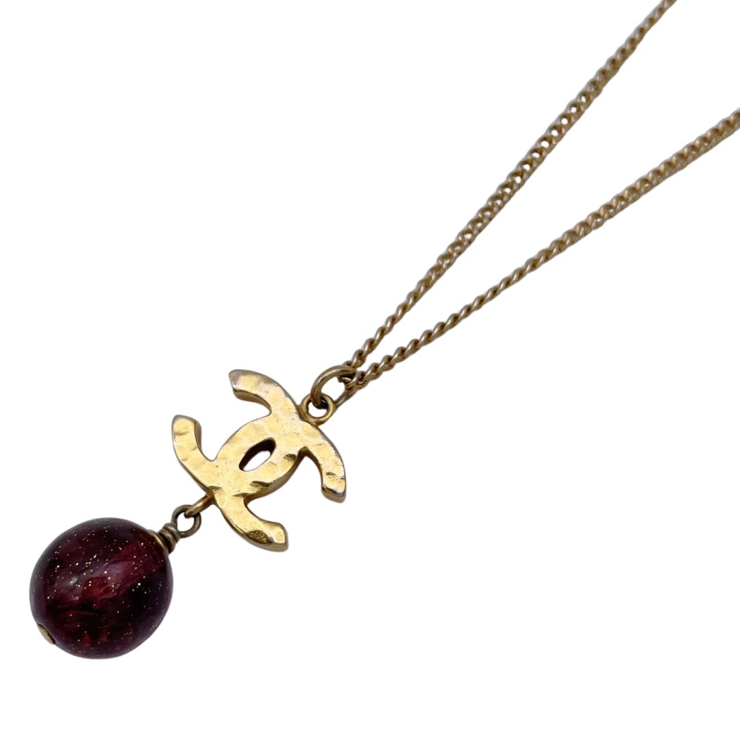 CHANEL シャネル ネックレス ココマーク カラーストーン 丸玉 ゴールド パープル B12A