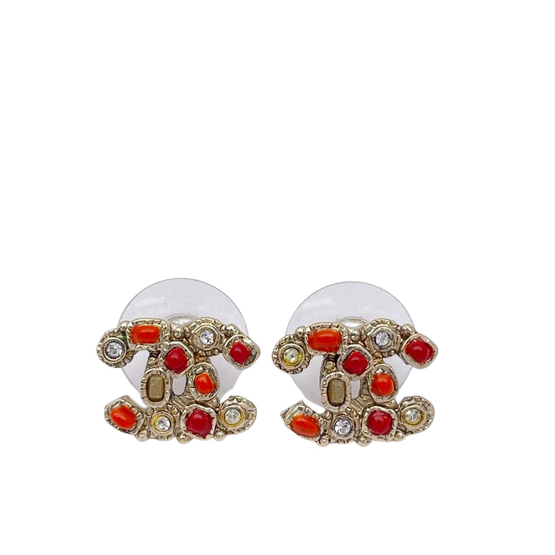 CHANEL シャネル ピアス ココマーク ラインストーン シャンパンゴールド レッド オレンジ 06P