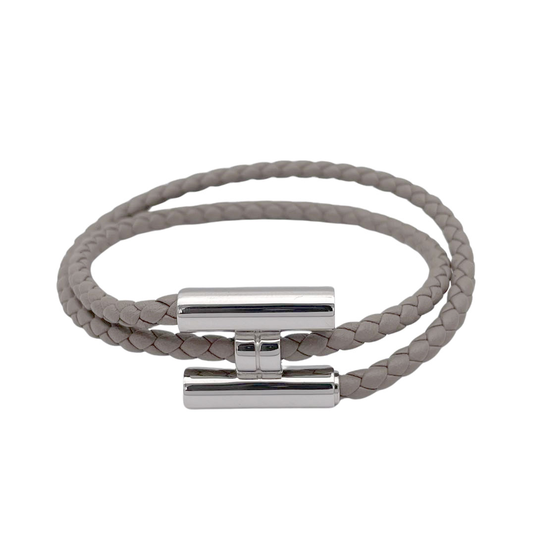 HERMES エルメス レザーブレスレット トゥルニ トレッセ 二重巻きベルト ヴォー・スウィフト グリ・エタン シルバー金具