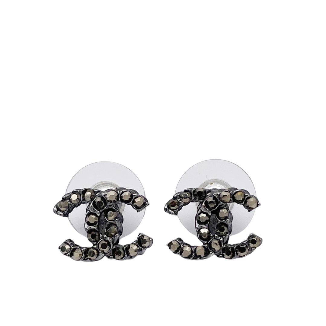 CHANEL シャネル ピアス ココマーク スタッズ ガンメタ ブロンズ系 C18V