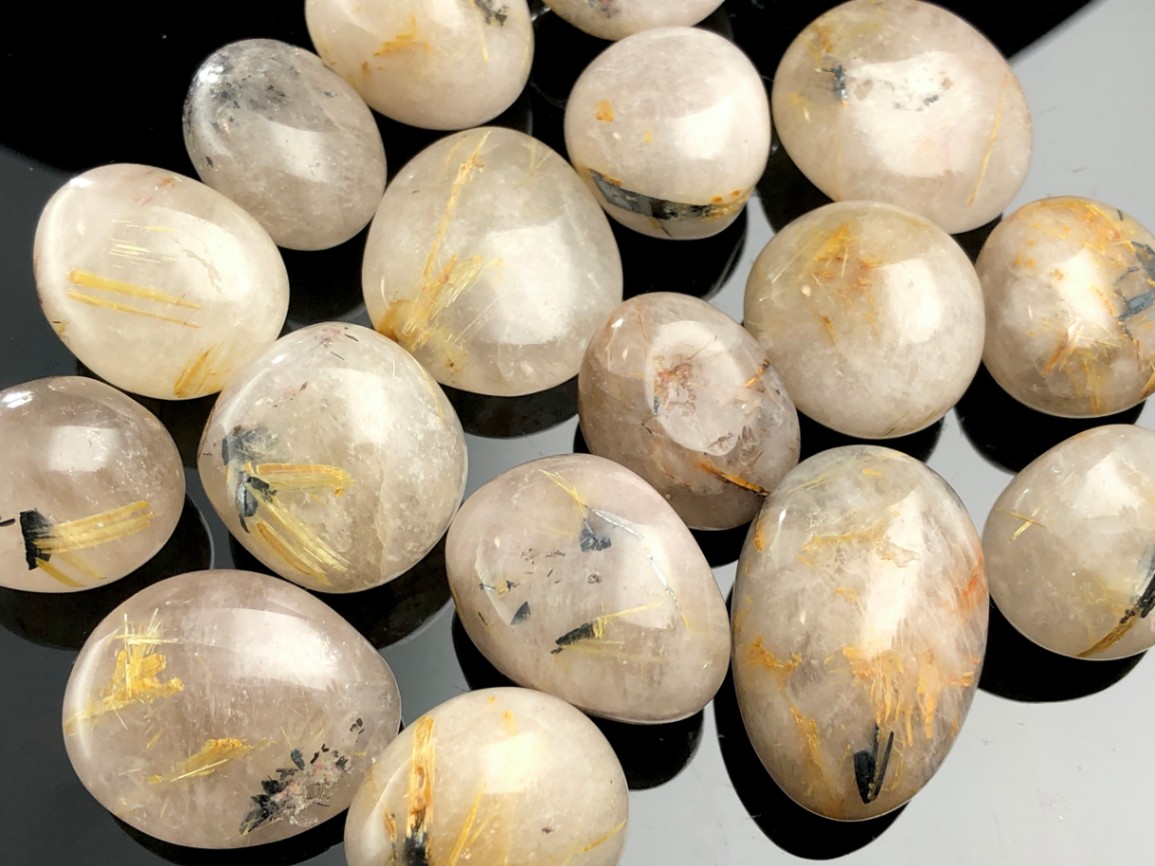 金運・財運の石★ブラジル産★天然石/タンブル(お守り石・握り石・磨き石)/ゴールドルチルクォーツ(ルチレイテッドクォーツ/金紅石入...