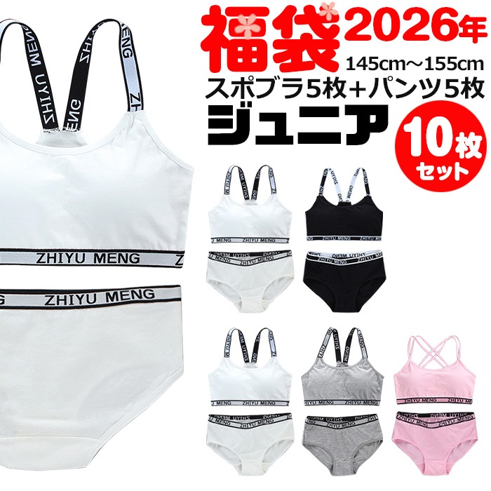2026年福袋 【訳あり】正午まで当日発送(土日祝除く) 送料無料 子供下着セット スポーツブラ パッドなしとパンツ10点セット ...