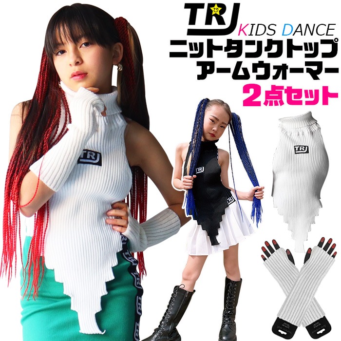 3~5日で発送予定(土日祝除く)ニットタンクトップ アームウォーマー 2種セット ハイネック 背中開き ニットセーター キッズ ジ...
