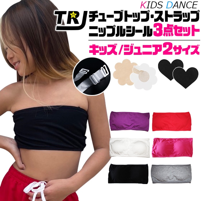正午まで当日発送(土日祝除く)3点セット ダンス チューブトップ 透明ストラップ ニップルシール スポーツブラ パット付き 女の子...