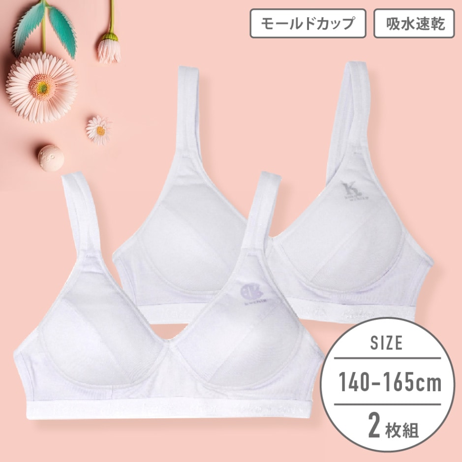 【女の子】スポーツブラ モールドカップ/ホワイト/ノンワイヤー 140~165cm 【吸水速乾】