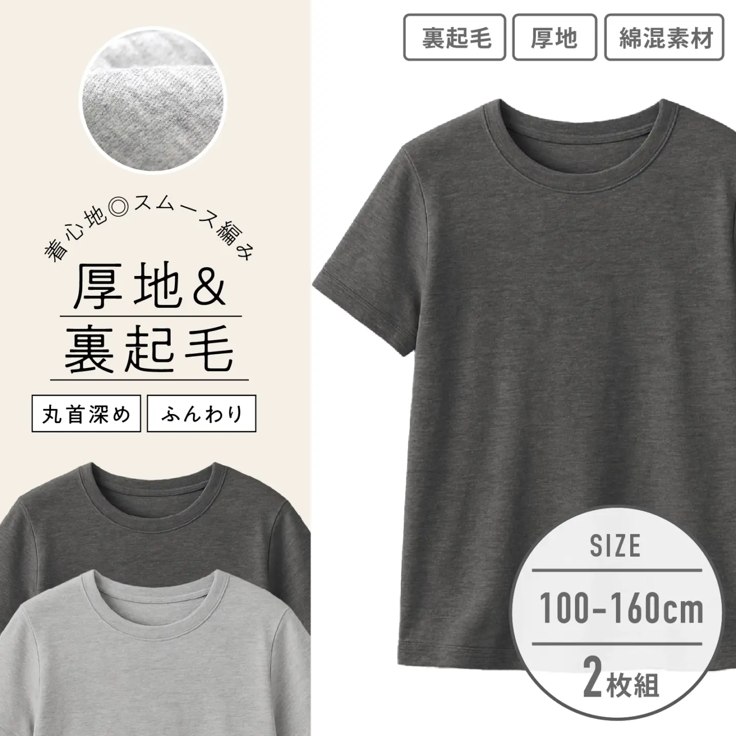 【男の子】キッズジュニア 半袖インナー 2枚組 無地 100~160cm【綿混素材/裏起毛】