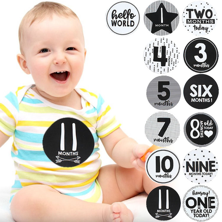 送料無料/ マイルストーン ベリー ステッカー ブラック/ホワイト 12ヶ月 数字 フォト ナンバー 13枚入り ABG