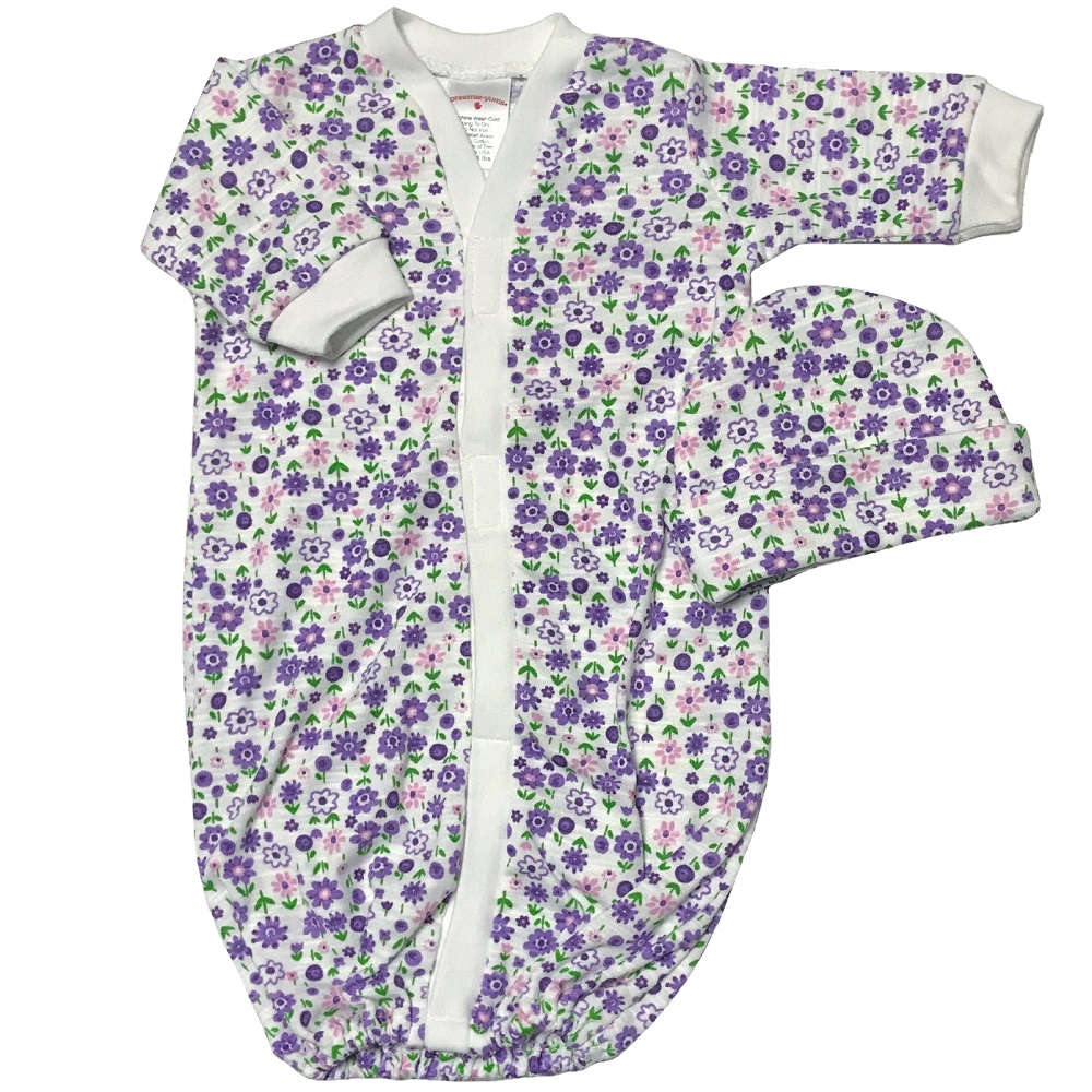 【未熟児】【低出生体重児】【早産児】用 フローラルガウン 帽子付き 【サイズ40-50】