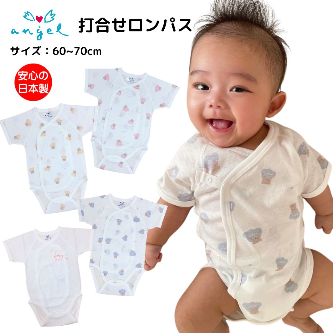 肌着 ベビー ボーダー プリント コンビ肌着 1枚 エンゼル ベビー肌着 赤ちゃん 肌着 50-60cm