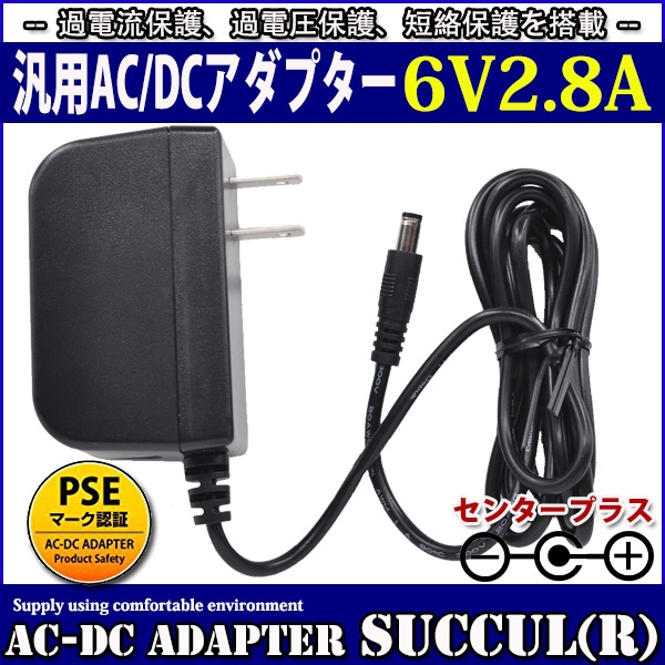 【1年保証付】汎用スイッチング式ACアダプター 6V 2.8A 最大出力16.8W 出力プラグ外径5.5mm(内径2.1mm)PS...