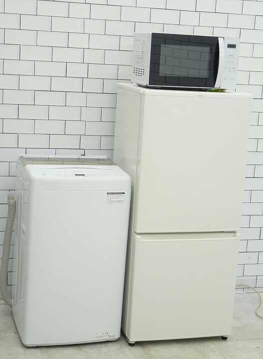 135L、6kg/22年、22年、23年/アクア、アクア、Haier製/(冷蔵庫、洗濯機、フラット型電子レンジ)中古家電3点セット