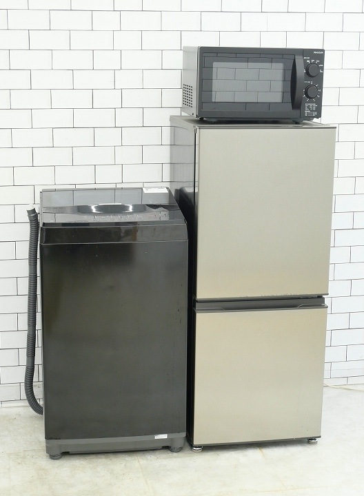 135L、5kg/23年、23年、20年製/アクア、アイリスオーヤマ、山善製/(冷蔵庫、洗濯機、オーブンレンジ)中古家電3点セット