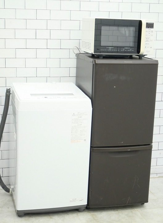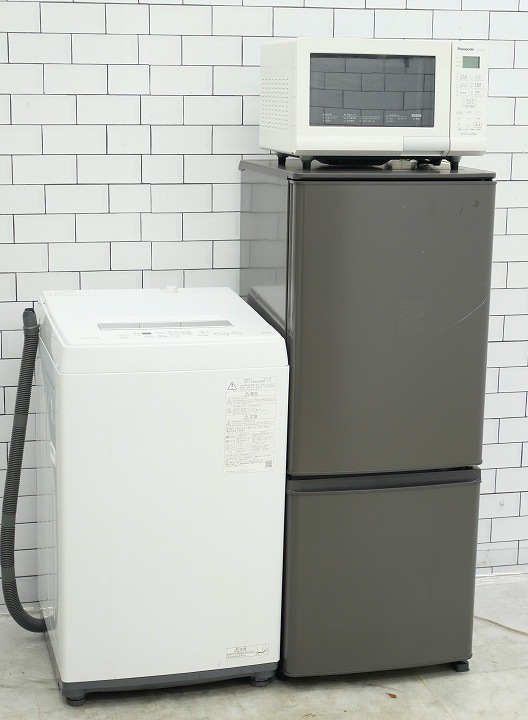 146L、4.5kg/21年、21年、20年製/三菱、東芝、パナソニック製/(冷蔵庫、洗濯機、オーブンレンジ)中古家電3点セット
