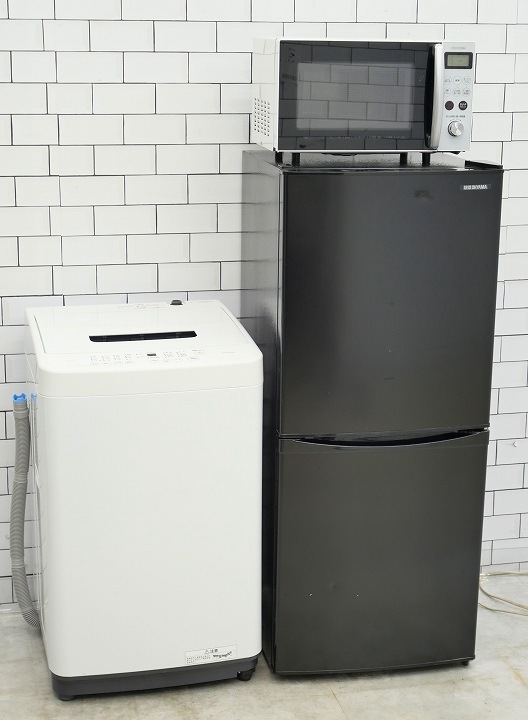121L、6kg/22年、22年、24年/Haier、ニトリ、アイリスオーヤマ製/(冷蔵庫、洗濯機、電子レンジ)中古家電3点セット