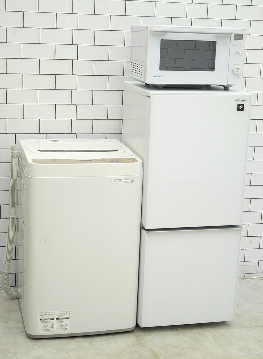 152L、5.5kg/22年、22年、23年製/シャープ、シャープ、東芝製/(冷蔵庫、洗濯機、フラット型電子レンジ)中古家電3点セ...