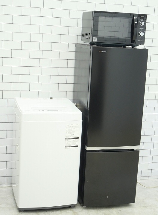 170L、4.5kg/20年、20年、22年製/東芝、東芝、東芝(冷蔵庫、洗濯機、フラット型電子レンジ)中古家電3点セット