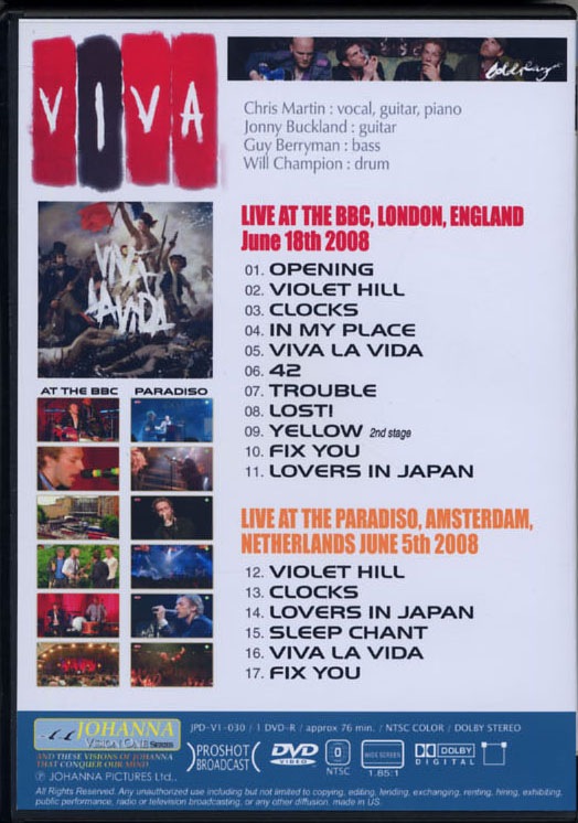 COLDPLAY / VIVA LA VIDA LIVE 2008 SPECIAL (1DVD-R) JOHANNA VISION...