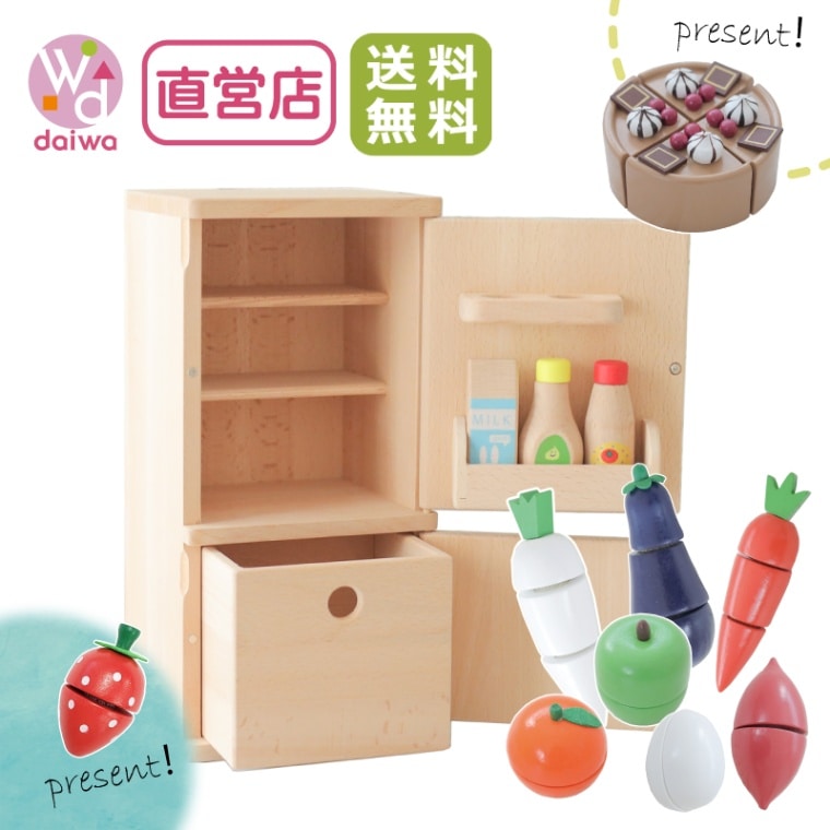 《presentケーキキャラメルモカ》&《いちご付き》★ミニれいぞうこ《白》&食材セット《包装不可*専用BOX》 (木のおもち...