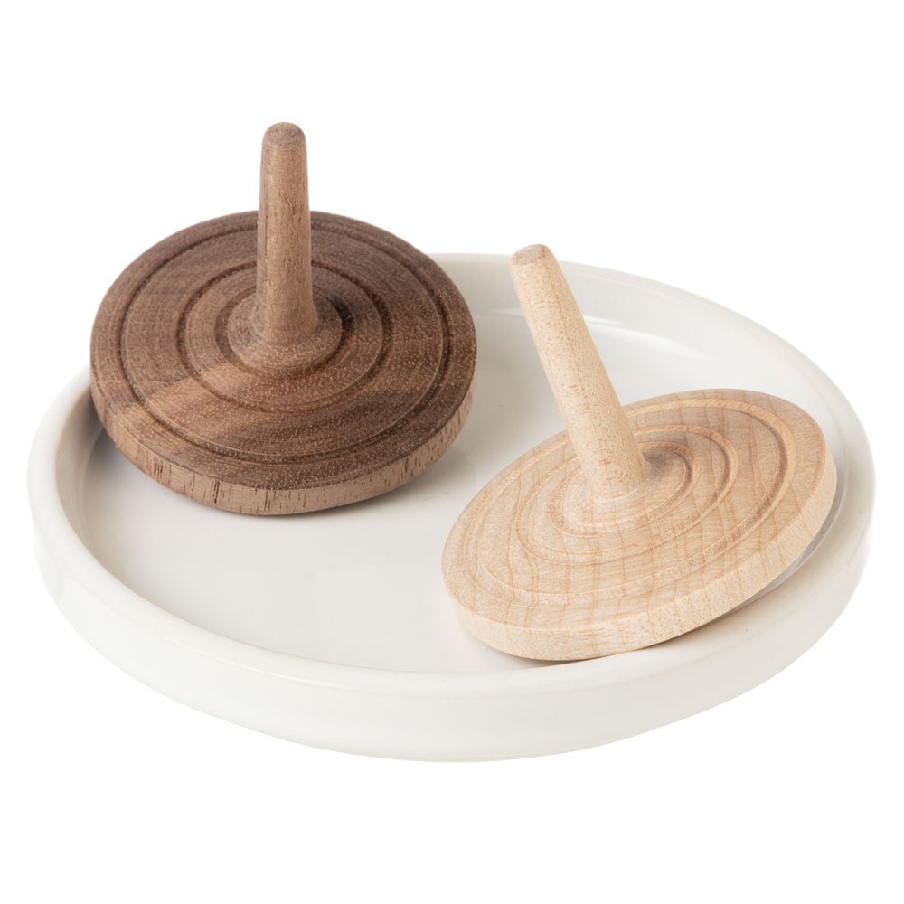 アロマを楽しむコマセット ブラウン&ホワイト+受け皿 遊べるインテリア 独楽 福岡県の木工品 Aroma top Fukuoka...
