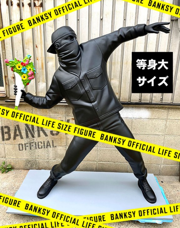 即納 巨大オブジェ 160cm バンクシー オフィシャル 等身大フィギュア 花束を投げる男 フラワーボンバー (ブラック) メディ...