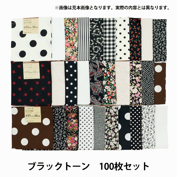 生地 『パッチワークカットクロス アソート 約35cm×55cm 100枚セット ブラックトーン PH-D』