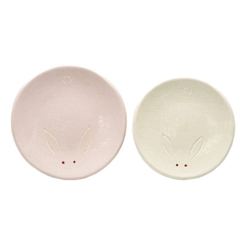 銘々皿一双 紅白兎 楽入窯 化粧箱入