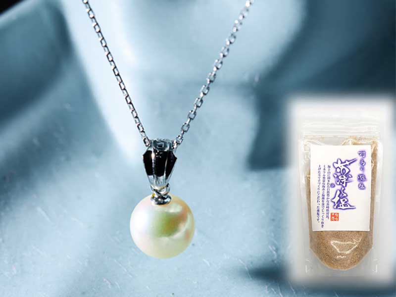 対馬パールのネックレスセット(対馬の藻塩付き)