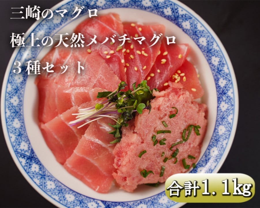 天然メバチマグロ 贅沢3種セット 中トロ・赤身・たたき 合計1.1kg【三崎の極上ブランドマグロ 3種詰合せ 贅沢食べ比べセット】