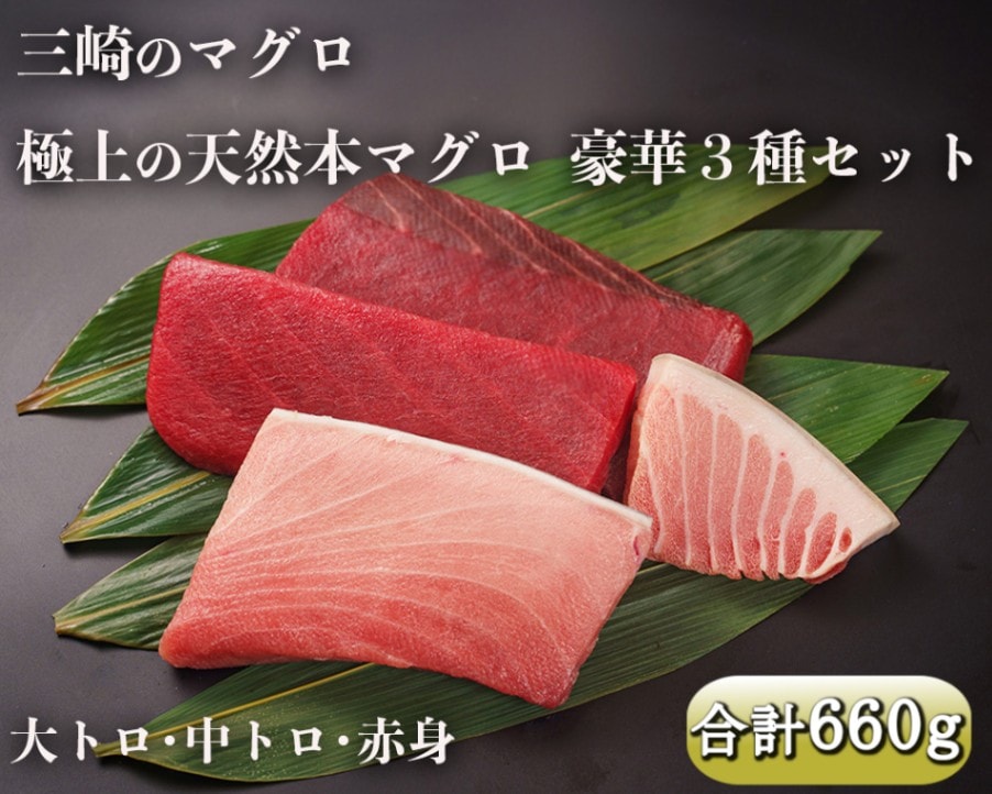 天然本マグロ 大トロ入り豪華3種セット【大トロ・中トロ・赤身 合計660g 三崎の極上ブランドマグロ】