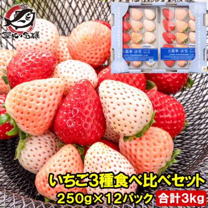 いちご3種食べ比べセット 250g×12パック 合計3kg 1箱 2パック入り