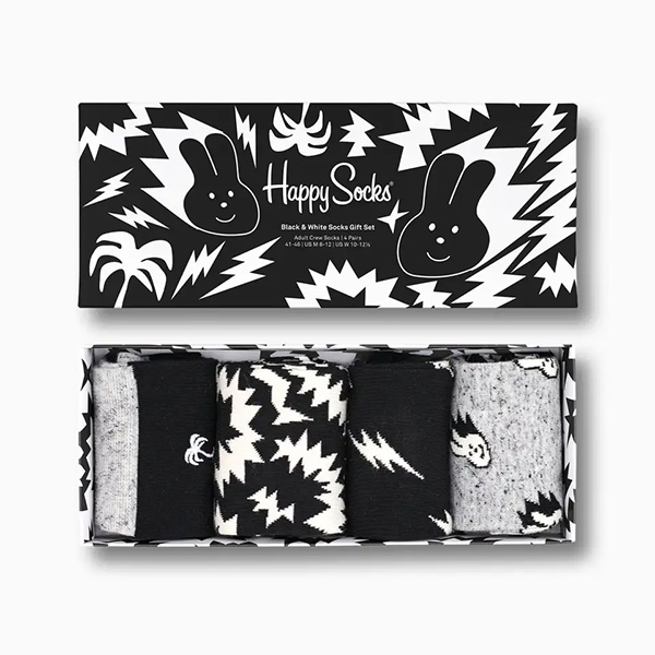 4-Pack Black & White Socks Gift Set [ 10223002-01 ] Happy Socks /...
