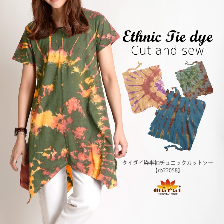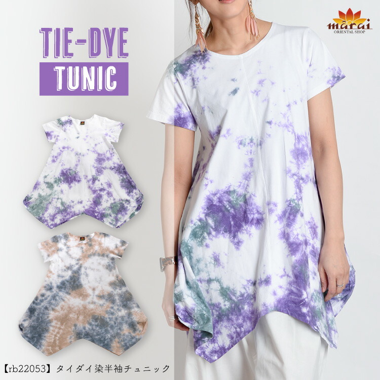 Tシャツ レディース 半袖 タイダイ タイダイ染 夏も爽やかに。タイダイ染半袖チュニック トップス チュニック カットソー 変形 ...