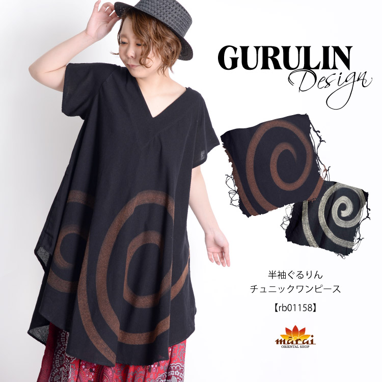 大人アジアンを演出。半袖ぐるりんチュニックワンピース