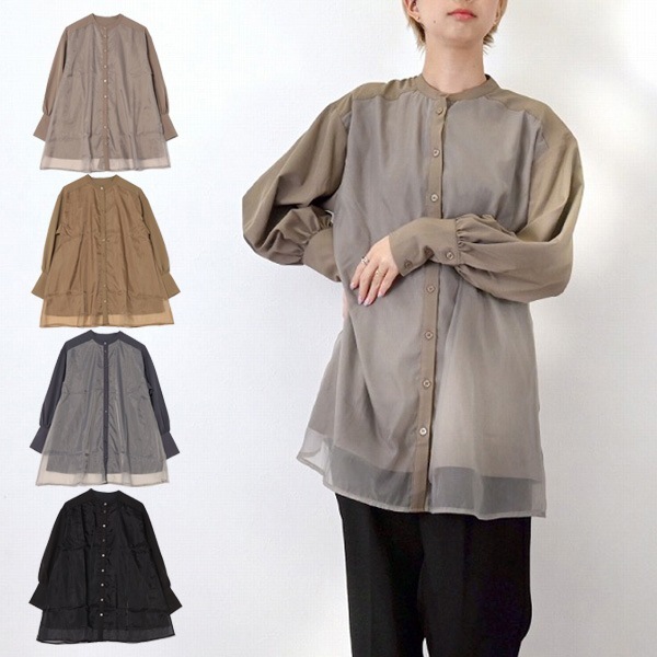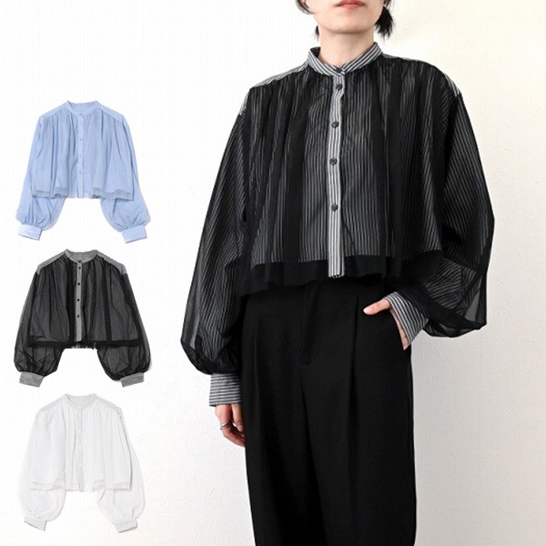 ブロード×オーガンジーレイヤードブラウス