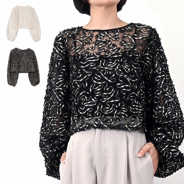 ラメフリルチュールボリュームスリーブブラウス