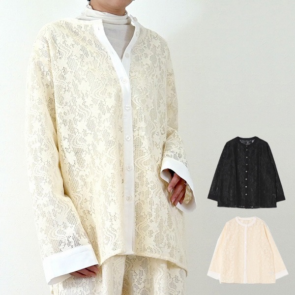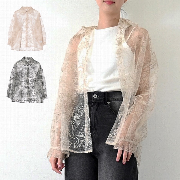 チュール花柄刺繍オーバーサイズシャツ
