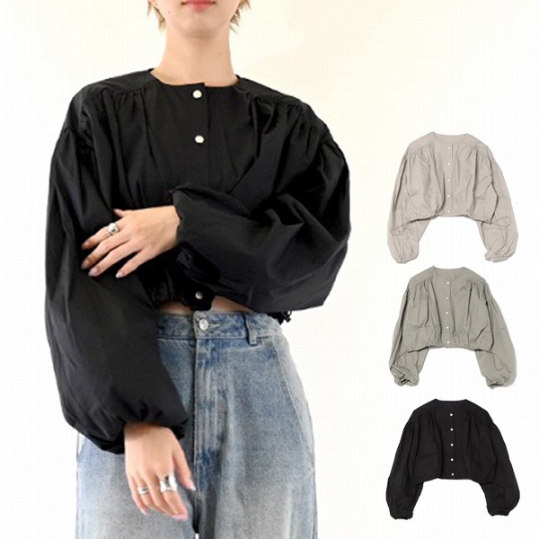 ブロードボリュームフルスリーブクロップドブラウス
