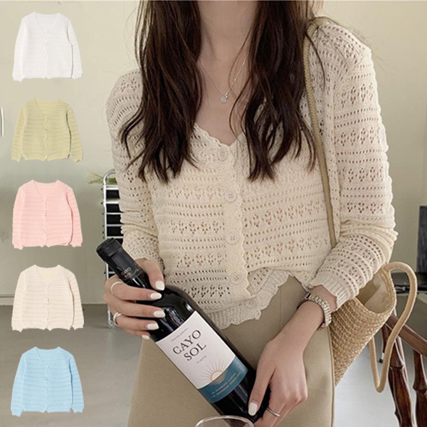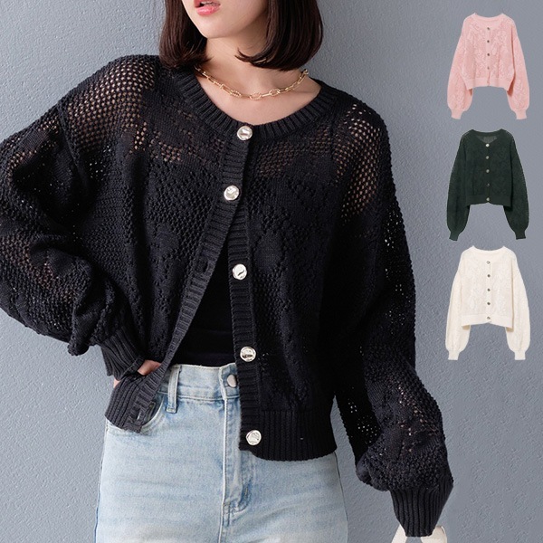 透かし編みニットカーディガン
