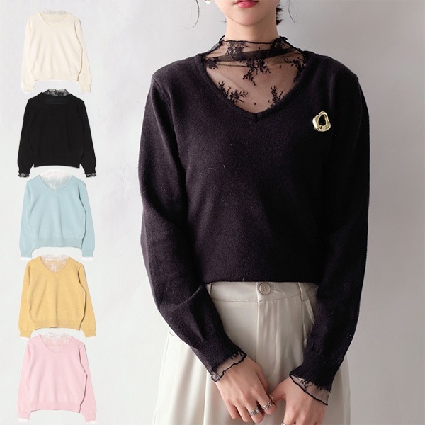レースドッキングニットトップス