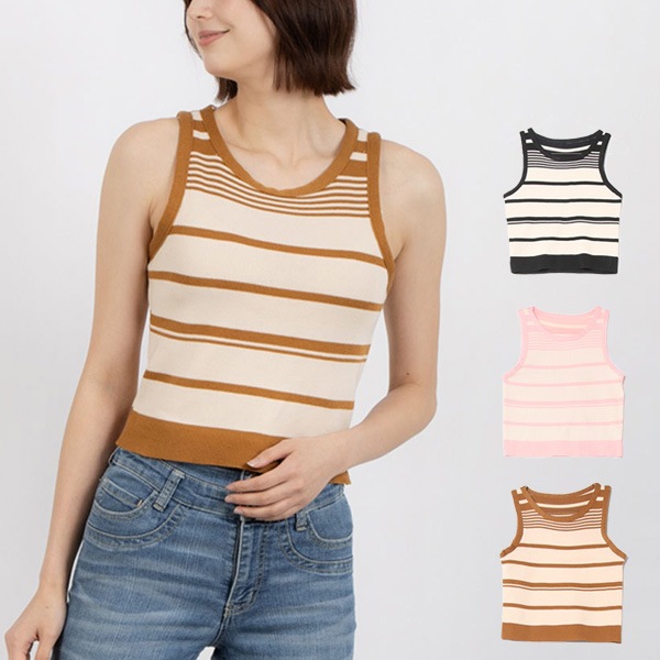 ボーダー柄ノースリーブニット